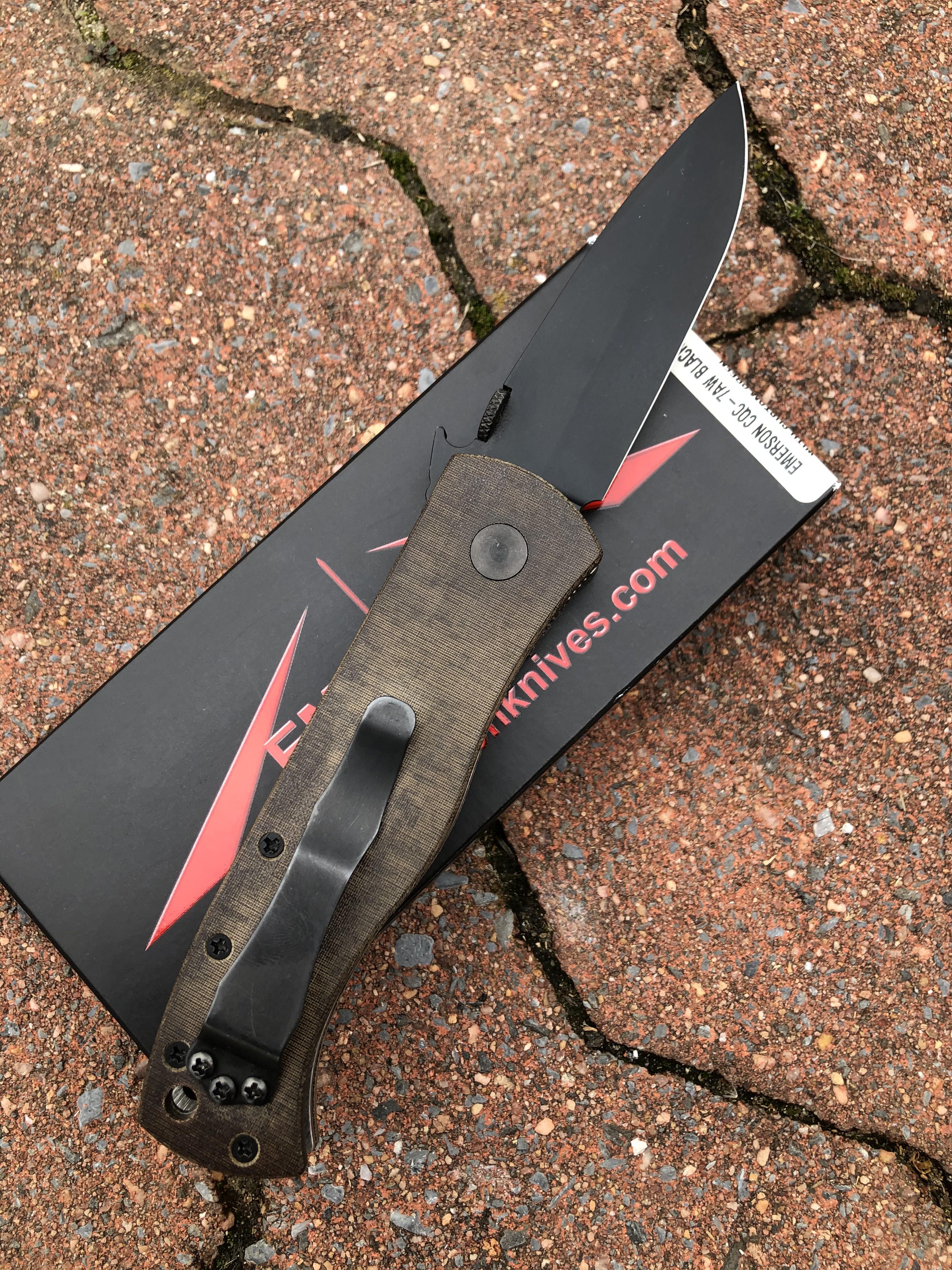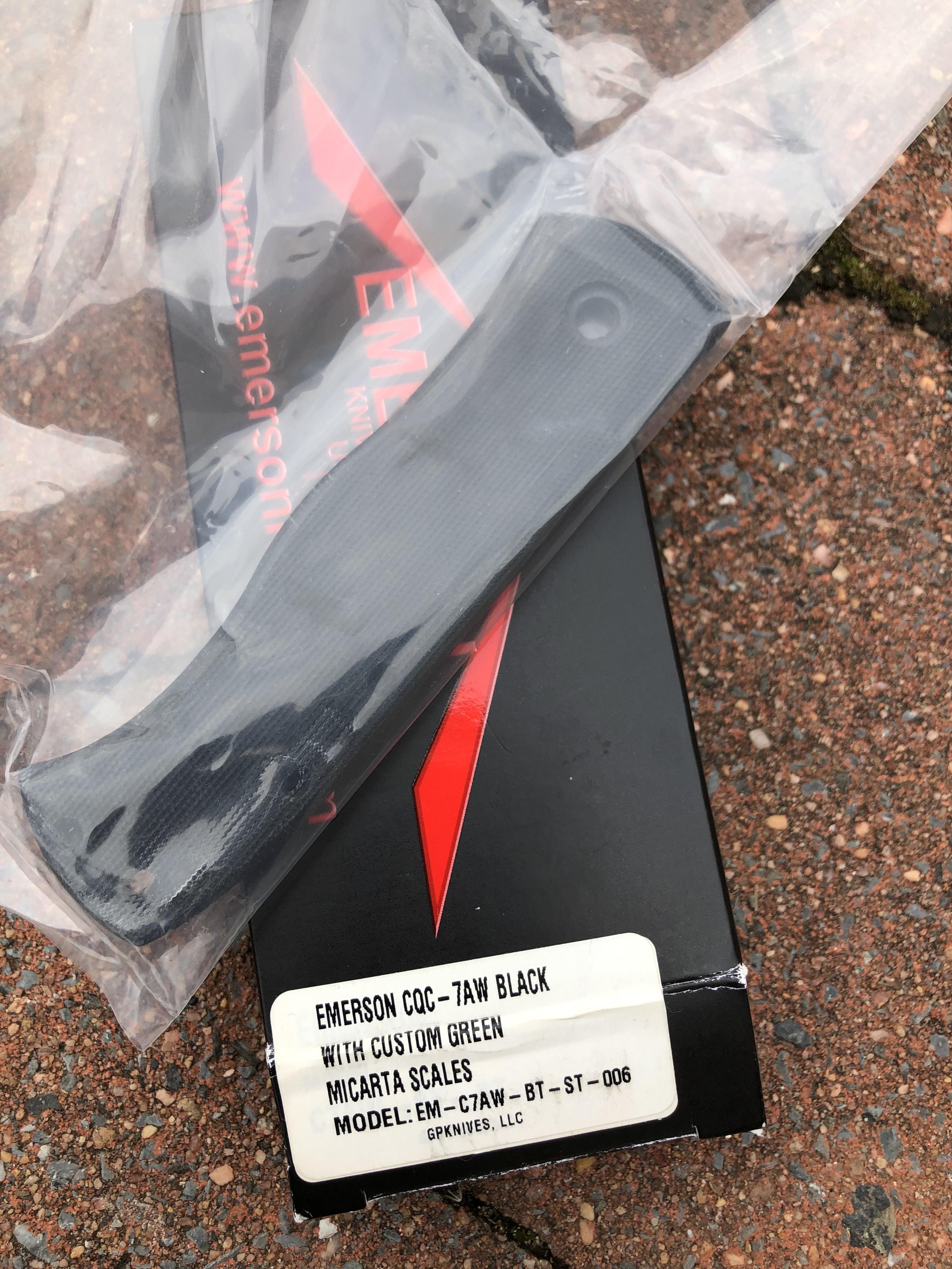 For sale today is my sprint run Emerson CQC-7AW with custom Green Micarta scales that I purchased from GPKnives. I am the original owner of this knife. It will come with box/papers as well as the stock set of black scales from Emerson. This knife has been carried maybe one or 2 times and has spent the rest of it's life in a pelican case. I am asking $200 PayPal or Venmo, shipping will be handled thru USPS. CONUS ONLY. NO TRADES. If you have any other questions or want more pictures feel free to PM me or email me at TCOLISON1ATGMAILDOTCOM.