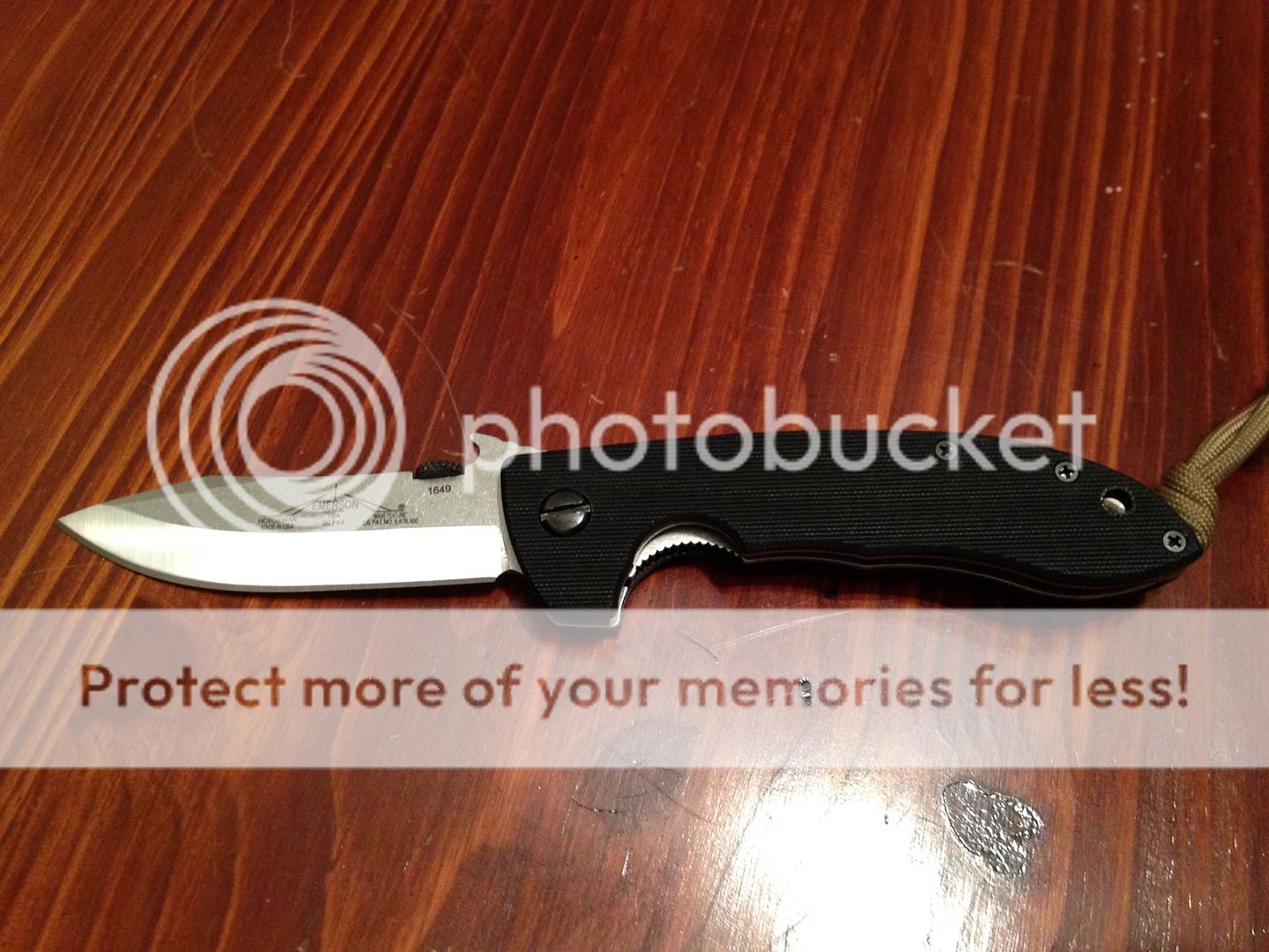 The LNIB Emerson Horseman SF (2014) w/ standoffs. Only Carried twice, factory edge.
