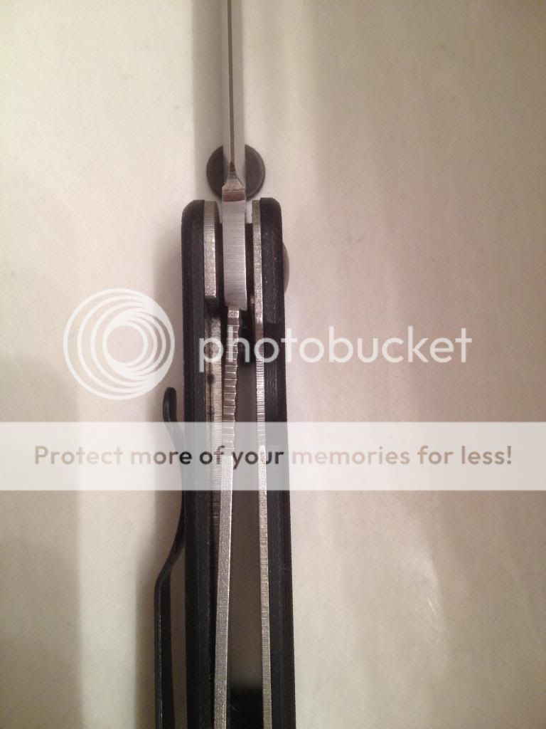 Blade is perfectly centered and lock-up just under 50%. Smooth as butter, no scratches or dings on blade. There is one SMALL ding on the butt end of the handle, but it's hardly noticeable. This one comes with Emerson box only.