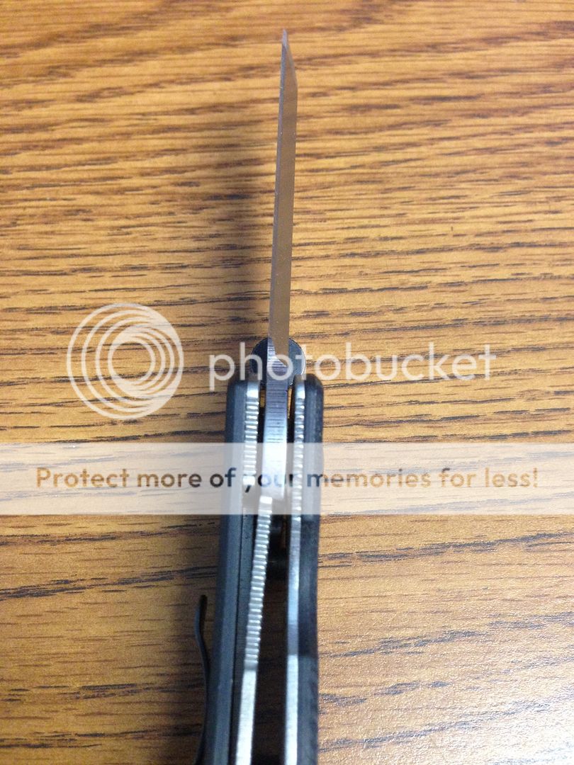 I am the original owner of this knife and have only carried it a few times around the house. The blade has the original factory edge, the knife is smooth, the blade is centered, and the lock up is solid. The knife comes with the original box, bag, & paperwork.