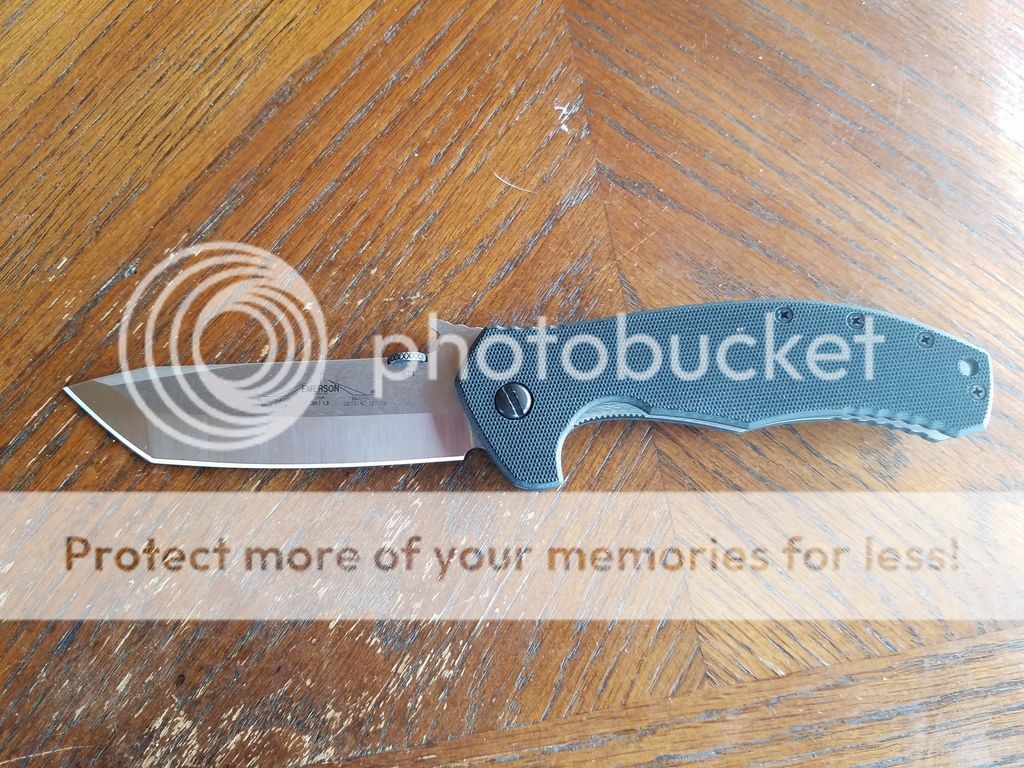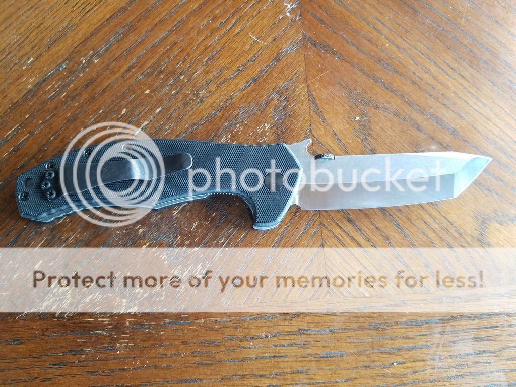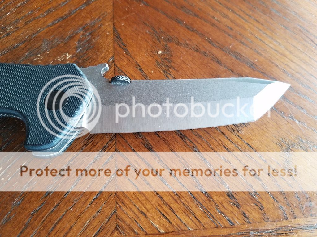 This has been carried by me lightly, and not really used. I have sharpened it up a bit. It does show some carry signs but nothing too serious, the pivot also has a few marks from adjusting the action. It's pretty smooth and the lockup is solid, unless you open it really lightly. I don't know if I have the box around anymore either. Centering is a tad off but not rubbing.