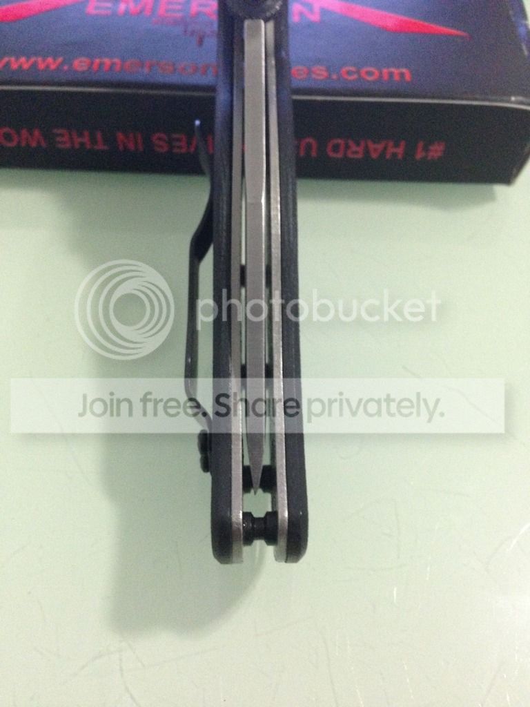 Emerson vindicator - very lightly carried and used. Only signs of use are some very minor rub marks on the pocket clip. Original , very sharp edge. early serial number #018. Early and very solid lock up.. No play at all in any direction. Centering is very slightly off towards lock side. Comes with box.