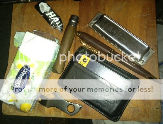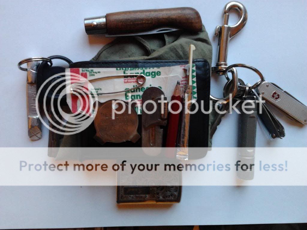 I always have some kind of traditional in my pocket. Lots of the time its my Case medium congress (one of my favorite pipe tool knives besides a stockman). My favorite lighter an Imco triplex because I just find it neato, my wallet and pearwood pipe. Thanks for the generosity. Not in for the GAW, just wanted to share.