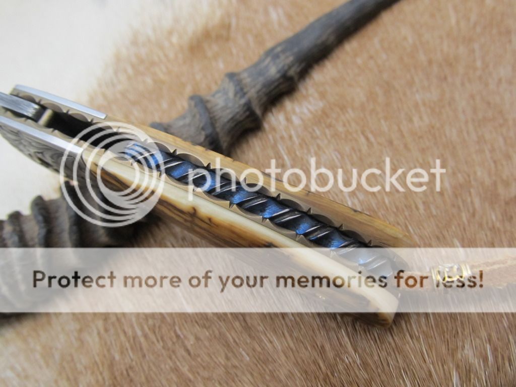 bolsters - 416 stainless, hand engraved by Jake Newell