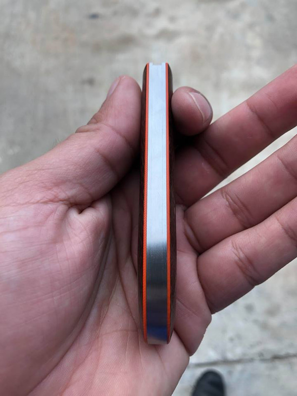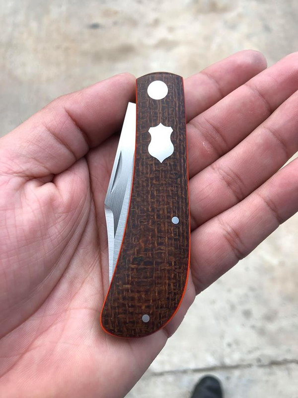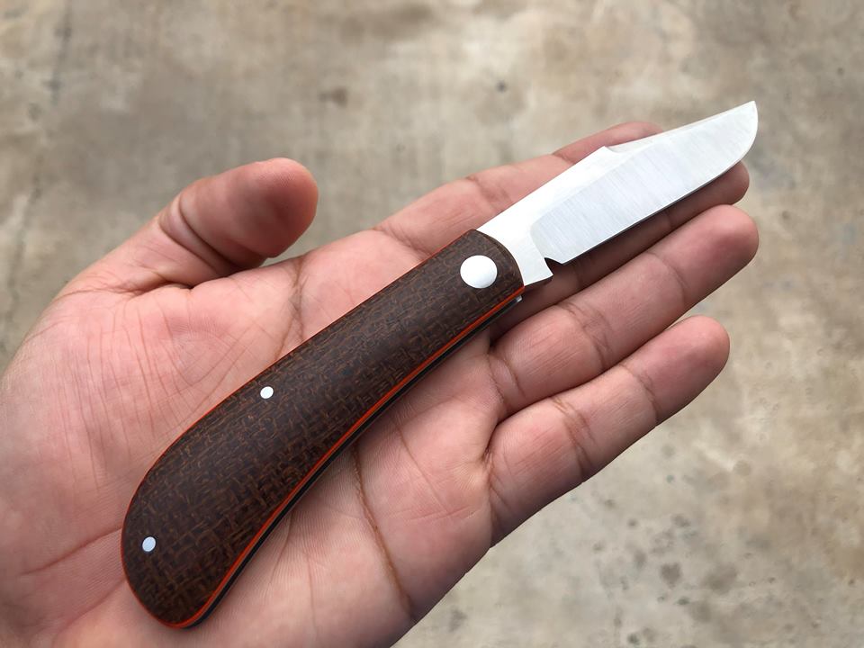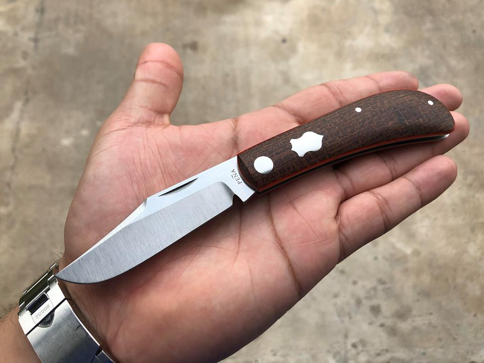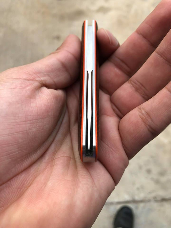 Asking sold shipped clear to me, USA only. Enrique Peña Lanny's Clip, Cpm154 clip point blade, Federal shield, Burlap micarta with a orange g10 liners over stainless steel liners. I measure 3.75" closed. This is the finest made slipjoint mechanically I've ever handled.