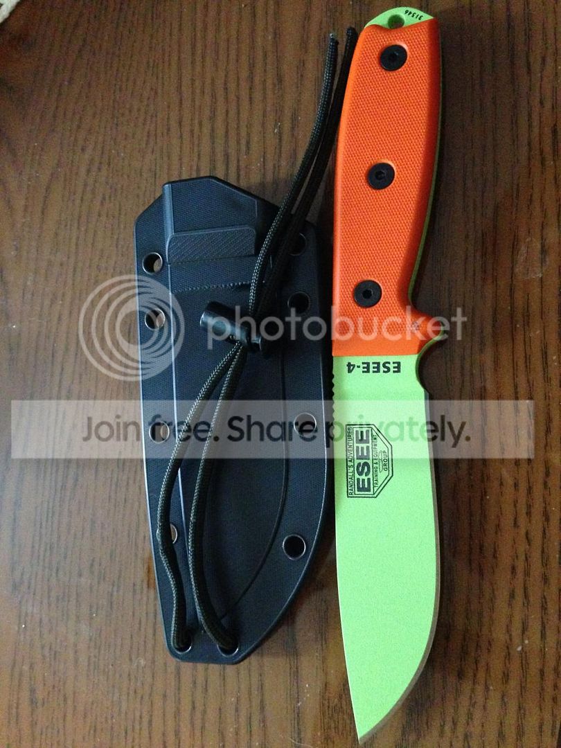 While I was there I checked out all kinds of stuff. I handled most of the Beckers, the LMF II, the Schrade SCHF9, the Esee 3,4,5, and 6, and a Spartan Blade just for fun. I really liked the handles on the Beckers and the Esees the most. When I saw the price of the Esee 4 was 87 dollars and the Beckers were pretty much the same price I decided to go with the Esee because of the warranty and the fact that my hand wraps perfectly around the handle and just locks on. It's also just a nicer looking knife in my opinion. I read some comments that said the BK2 and Esee 5 were to clunky and thick and they were right. I didn't realize how thick they were until I actually held one for myself. So I decided to go with the Esee 4 because it's the perfect size for what I need. If I need to I can always carry a hatchet or folding saw along with it. Plus the color really gets me. I love it. I just wish it would stop raining and snowing so I can get out and play with it!