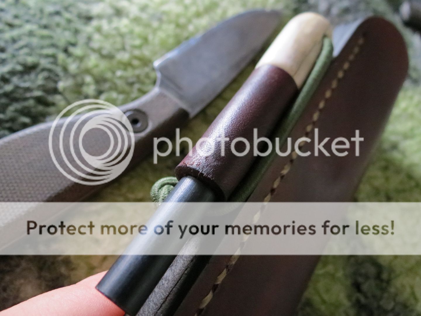 The custom sheath has some light scratching on the bottom of the ferro rod loop, but it is only cosmetic (and hard to notice).