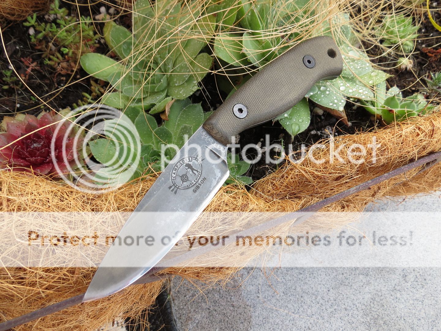 The sheath was made by myself out of 9/10 oz veg tan, finished with dark brown dye, neatsfoot oil and Sno-Seal. Sewed up with artificial sinew, and it has a loop fit for an army size ferro rod.