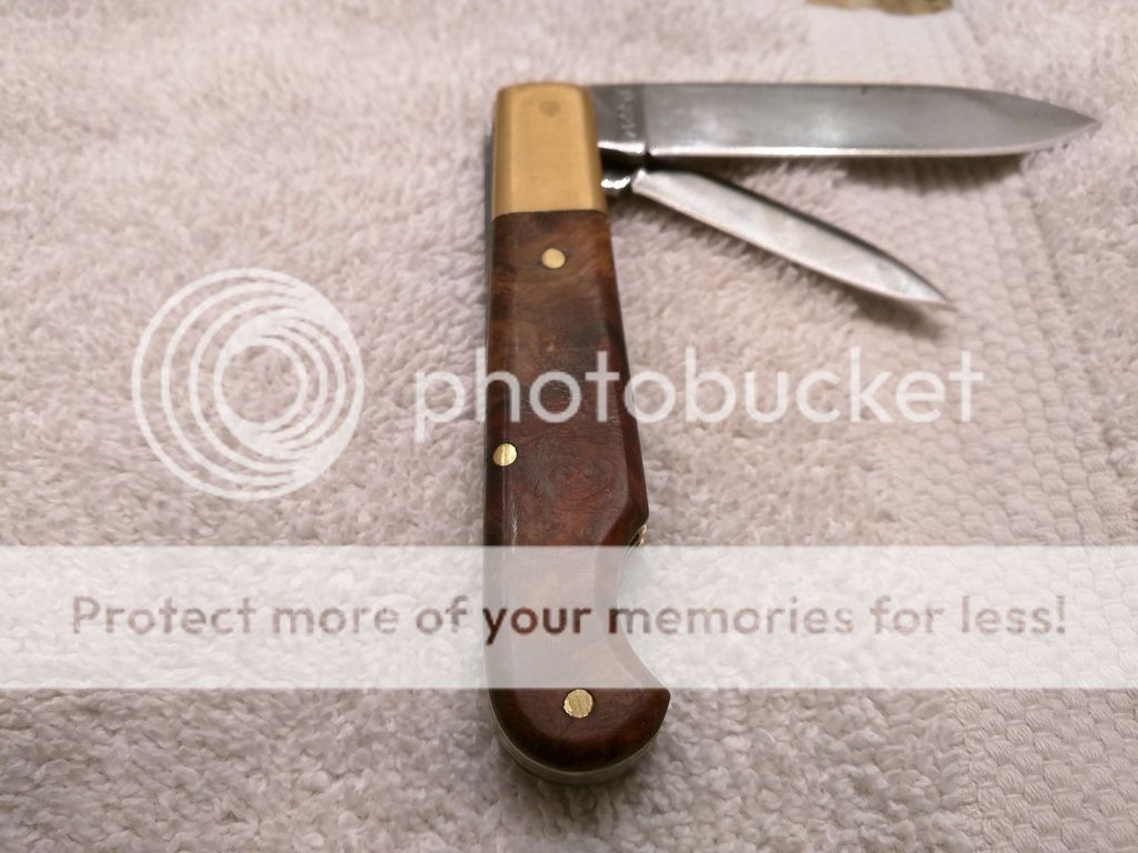 I believe Evan added brass bolsters and Amboyna burl scales to a stock GEC 15. I have gotten a bunch of use out of this and it's time it finds a new home as I'm selling my entire collection. This was originally coated with a sealant outside the scales but I removed it after it got scratched up.