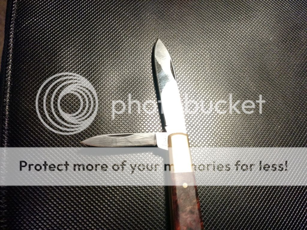I also dropped this a couple times and one scale cracked and a tiny piece at the butt of the handle broke off. It's been superglued back on and shows no sign of coming apart. There's rust spotting and scratches on the backsprings and a little blades. It's been a user and is fittingly hair popping sharp.
