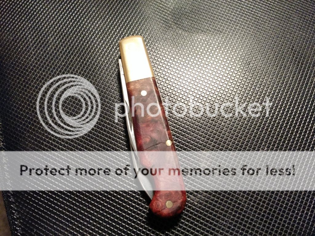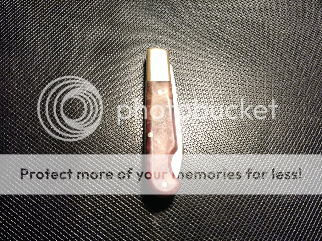 I believe Evan added brass bolsters and Amboyna burl scales to a stock GEC 15. I have gotten a bunch of use out of this and it's time it finds a new home as I'm selling my entire collection. This was originally coated with a sealant outside the scales but I removed it after it got scratched up.