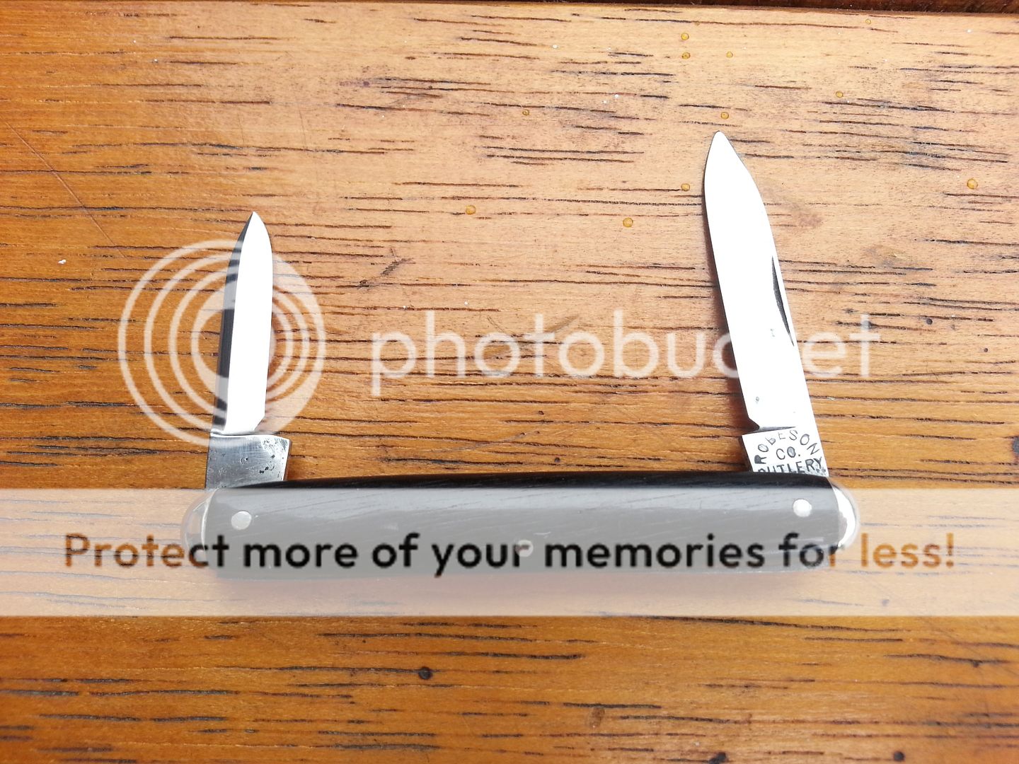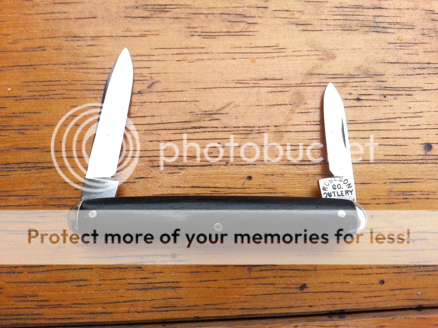 Anyway, among the many, many knives he had, I found this little 2 3/4" Robeson pen. Tang stamp shows it was made between 1900 & 1916. It looks like it's barely been carried. I checked it out through a 10x loupe and I don't think it's ever been sharpened. I thought at first it had been buffed up and polished, but I think it's original. What do you guys think?