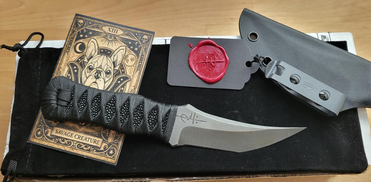 got it. its big and bad.....I aaaalmost went for the Tigerstripe one, but this green just fit the knife for me (and the first one of these I ever handled was the original, this one), and I had to go with it. I look forward to pics of yours though, this blade is actually really large, so those stripes are going to pop.