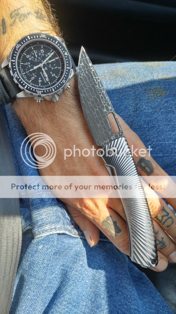 Really?! Five posts since Charlie Mike softballed this picture in here, and NO ONE is gonna take a swing at it?! Mike, you have no shame brother! And I thought the bathroom countertop pictures with feet in the background were hilarious. This one takes the award. Thanks for at least getting your drawers out of the shot, unless it was a commando day. Just hilarious. Nice knife, too.