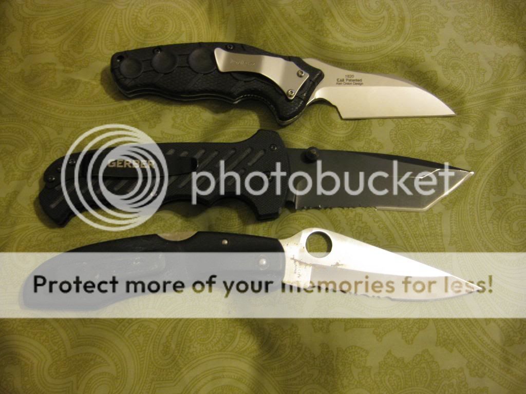 2. Gerber 06 FAST - Got this as a gift a while back from a co-worker, and I've since carried, used, and sharpened it. Before I got it, he told me he grinded off the protruding window breaker object at the end of the handle because it often stabbed and scratched him. It could use a little sandpaper to smooth it out, no big job. Great for a hard-user. Blade flies out as well!