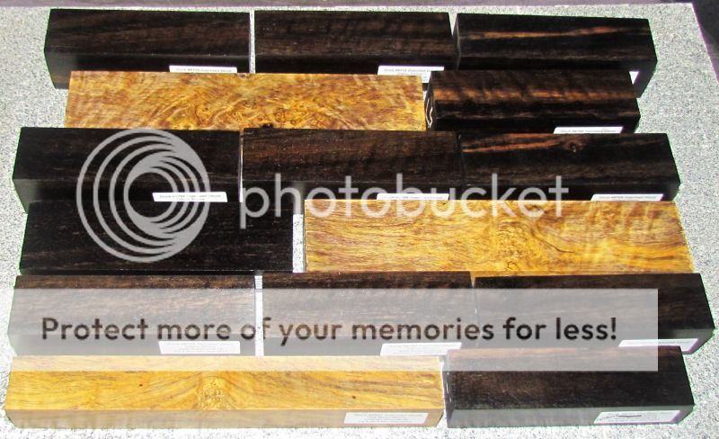 Kind of spendy with many priced at $100+. But when you look at the photos you will see why. Many of the blocks are 2"+ wide so they can be used for handles on fighters or other large handle knives. I have posted about a dozen so far with 2 dozen more being added today.