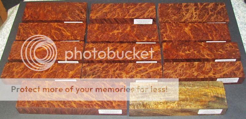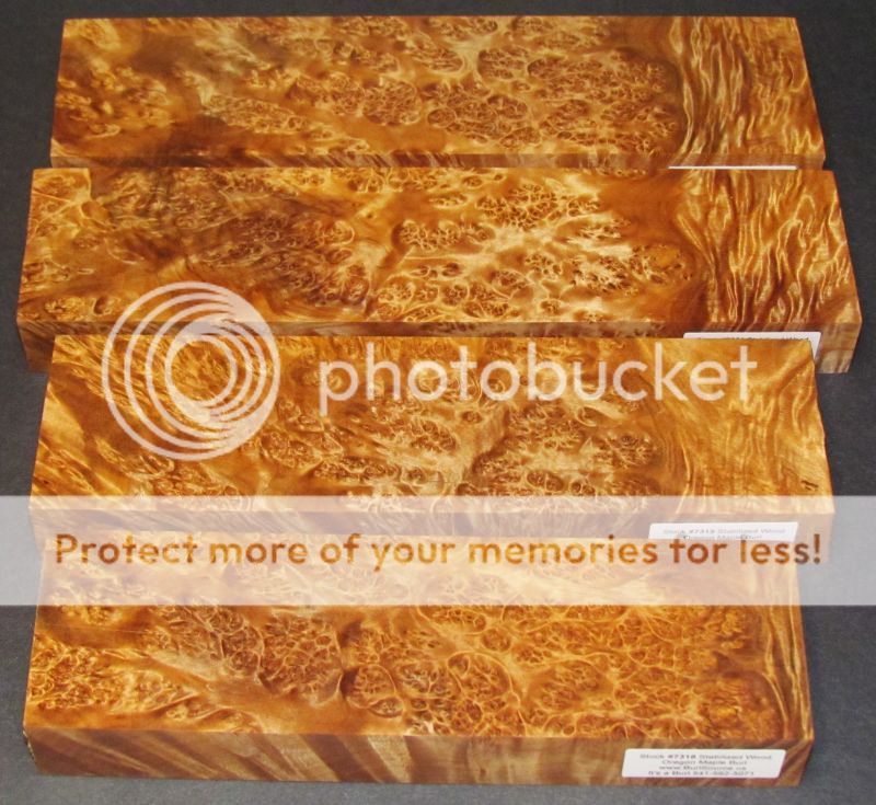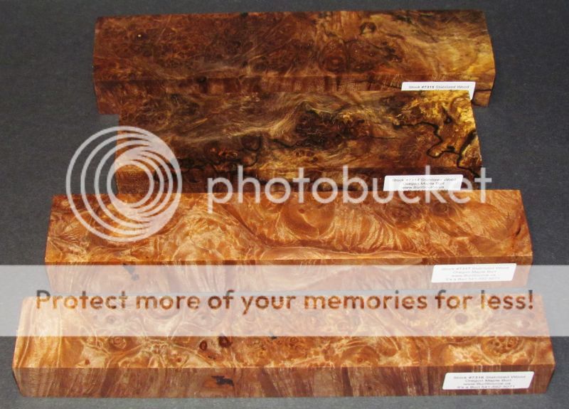I just finished posting some extra large blocks in the Brand New Pieces section of our webstore. Some of these will yield more than one handle. These are Oregon Maple Burl that was stabilized by K&G.