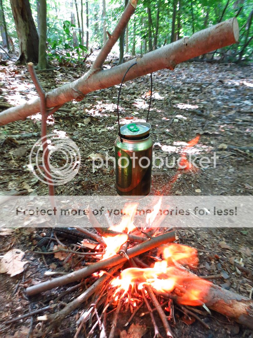 I use either a Fosters Beer can or small size Heineken Beer can for boiling water for making rice or mashed potatoes, and coffee. The Fosters is rigid compared to regular soda cans. I use a Goodcook safety can opener to remove the top without leaving any sharp edges, and it also makes a perfect pot lid. The weight on my old MSR Titan Titanium kettle was 4 ounces with lid. The Fosters is about .5 ounces (with lid). I used a hole puncher and added a wire hanger as a bale. The smallest boiler I use is a Heineken, which is hard to get a reading on the weight because it doesnt register much. When the top is removed with a safety can opener it leaves the ring at the top intact, making it rigid for use as a cup. When full, its enough water to rehydrate packaged rice, mashed potatoes or pasta. Extreme lightness is achieved by using either one and is usually just the right amount of water capacity.