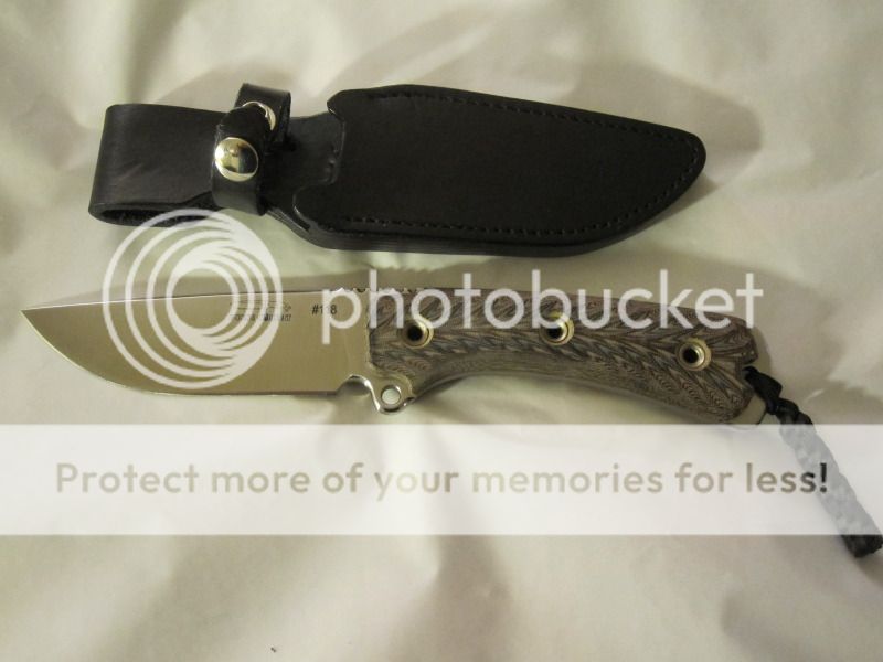 I hate to part with this first one which is one my grail knives but have to let it go its a brand new never used FBMLE #93. It is .320 thick with Tigerhide Magnum Micarta handles and comes with a Black custom RH dangler sheath made by Rainwalker which is awesome. Lanyard included!