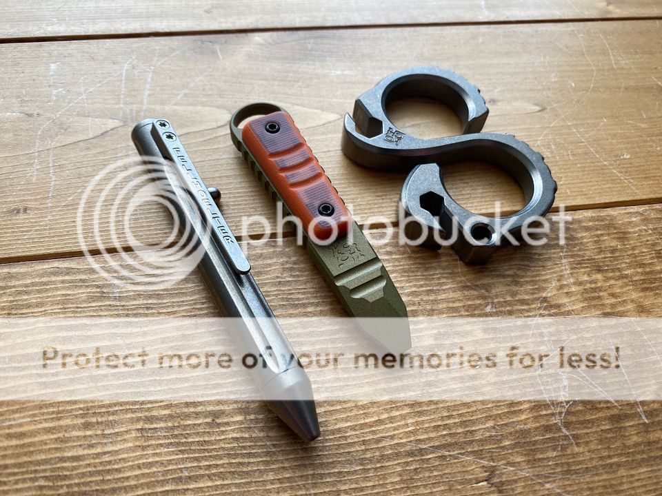 Koch Kursor Prybar. Coated titanium with orange g10. Comes with all packaging. As new. Never carried. Never used.