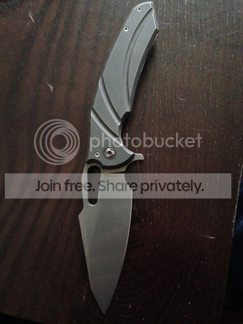 Ferko Mako user for sale- I media blasted the handles and pivot screw. Then I gave the edges a light worn look, also spun the pivot in a drill while polishing with 2k grit paper. Came out with a nice user look with a two tone pivot (bead blasted and polished). Lock up is super solid and early. It appears to have some sort of ceramic coating on the blade??? There a TINY nick in the edge towards the tip- couldn't even get a good picture. It'll sharpen out next time. Perfect centering and super smooth action. You won't be disappointed ! Also comes with original pouch.