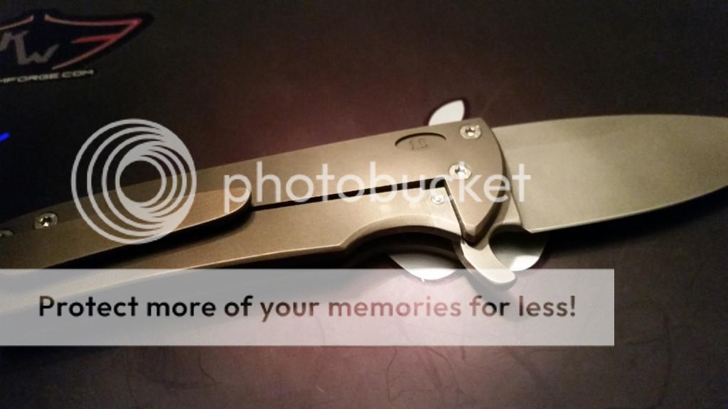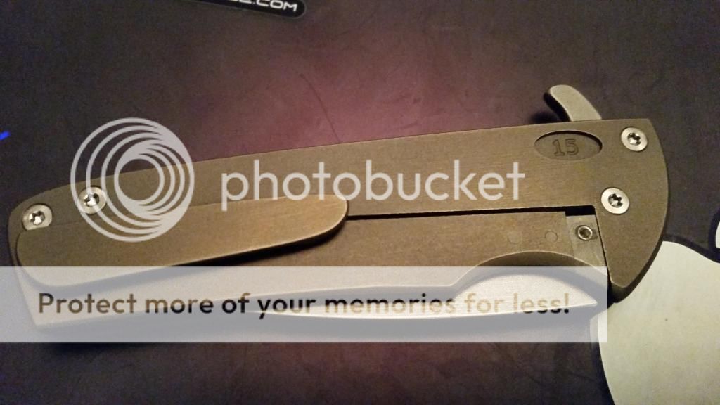 This thing is in perfect condition. It literally feels like a fixed blade when opened. It is dead centered. And when I tell you that it flips like a rocket, I mean a ROCKET. The best part is, you can change that via the HRD (Hoback rolling detent) installed. It has ceramic bearings, and is very smooth. Bronze ano'ed satin finished frames with some other golden tones showing threw lightly. The inside of the screw holes and the holes in the frames have been chamfered and polished, and then ano'ed as well for a nice contrast. The detail work is insane. Blade is S125V and will hold an edge FOREVER. The blade spine is hand rubbed satin finished. Knife has a great feel in the hand.