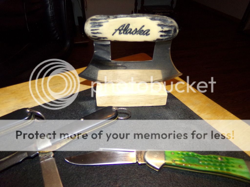 #6 ULU knife Antler handle that says Alaska with stand ($12.00)