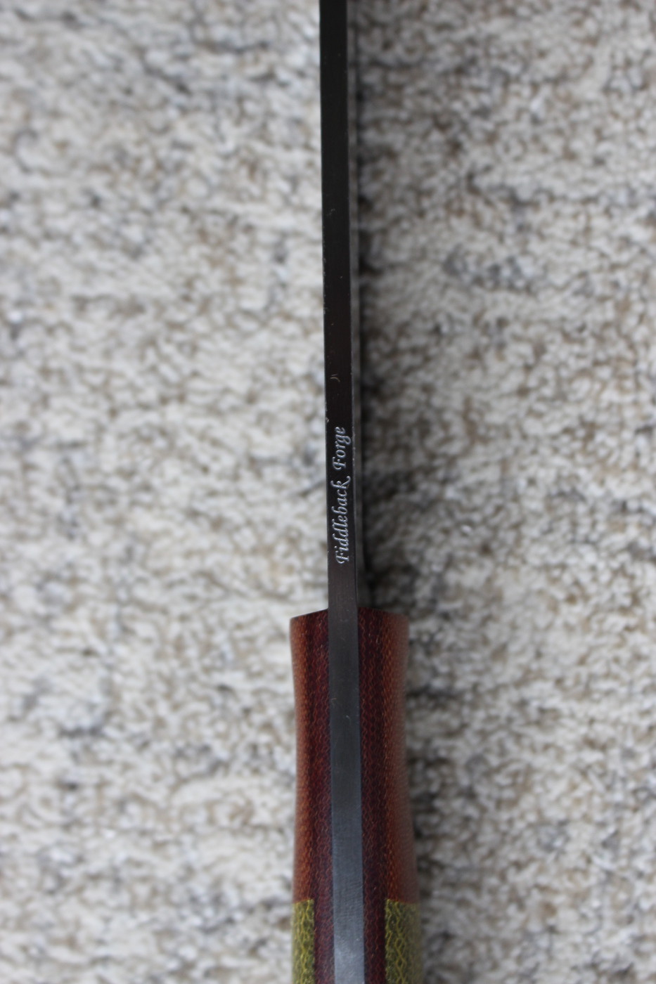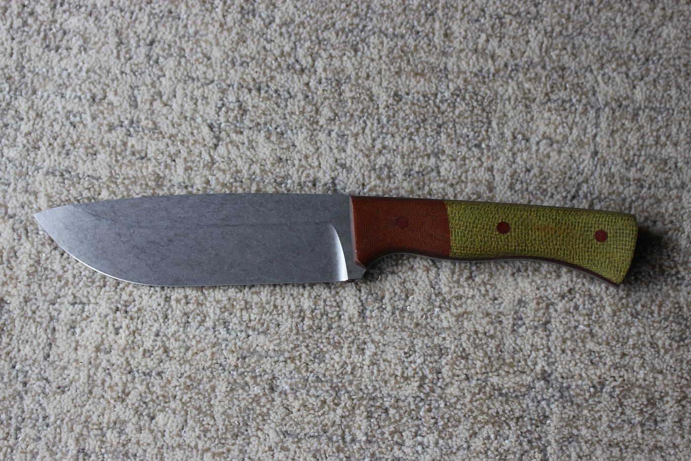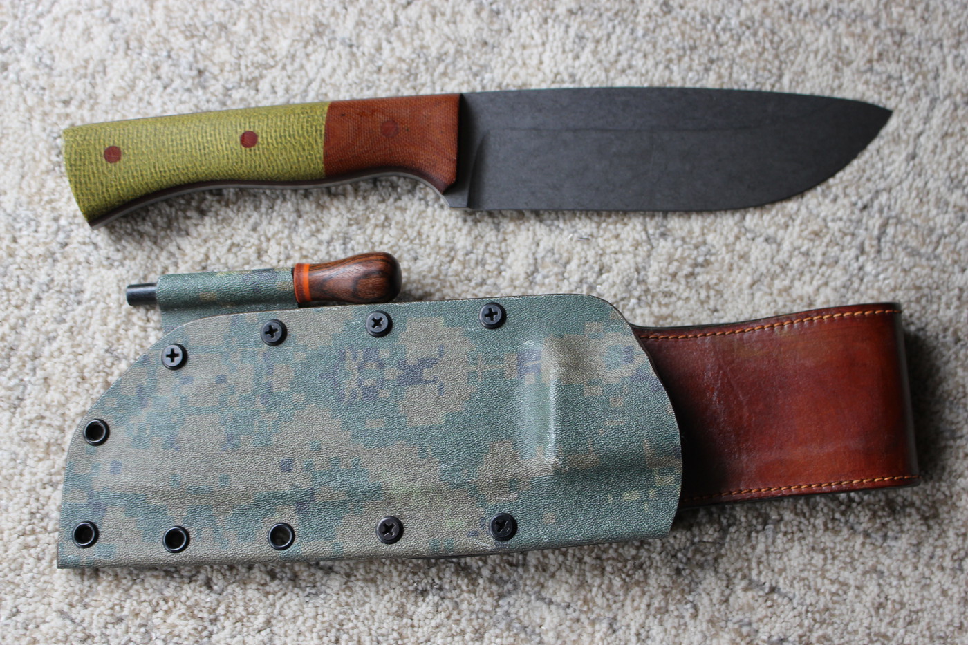 OG, and I mean OG Fiddleback Bushcrafter: 5/32" CPM SV35N with *Experimental Spalting (see below) Black burlap scales / Black Bolsters / Canvas Pins. (NEW)