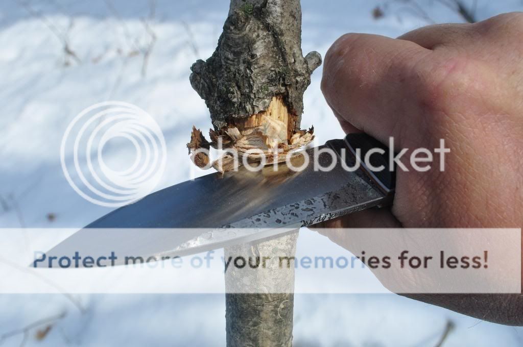 All kidding aside, field use and field maintenance of the edge are topics I am interested in. I have spent a great deal of time learning how to obtain and maintain a scary sharp V edge (and even convex edges) on knives using water stones. I am still getting a feel for 01 steel. For example, I sharpened the Recluse that I obtained from you to a pretty accute V cutting edge (probably 15 DPS or 30 D inclusive), and I found that I rolled the edge with moderate use. So I clearly went beyond the limits of this steel. I am now experimenting with it to see how accute I can take it, and still have a strong enough edge to withstand normal bush crafting duties. I carry a small 1,000 grit water stone to the field to maintain edges when going for extended periods. So my request would be to continue to test the knife in the field, teaching bush craft techniques like you do so well, then maintaining the edge in the field. Some sort of measurement of cutting ability both before and after sharpening I would find very informative.