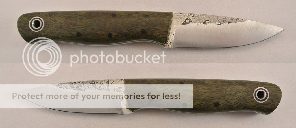 Original Sale: W-A-Surls-Wednesday-03-30-2016 Patch knife with green lacewood over natural liners with white pinstripe flat ground on 3/32 A2 Standard Full Tang $240