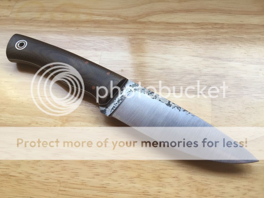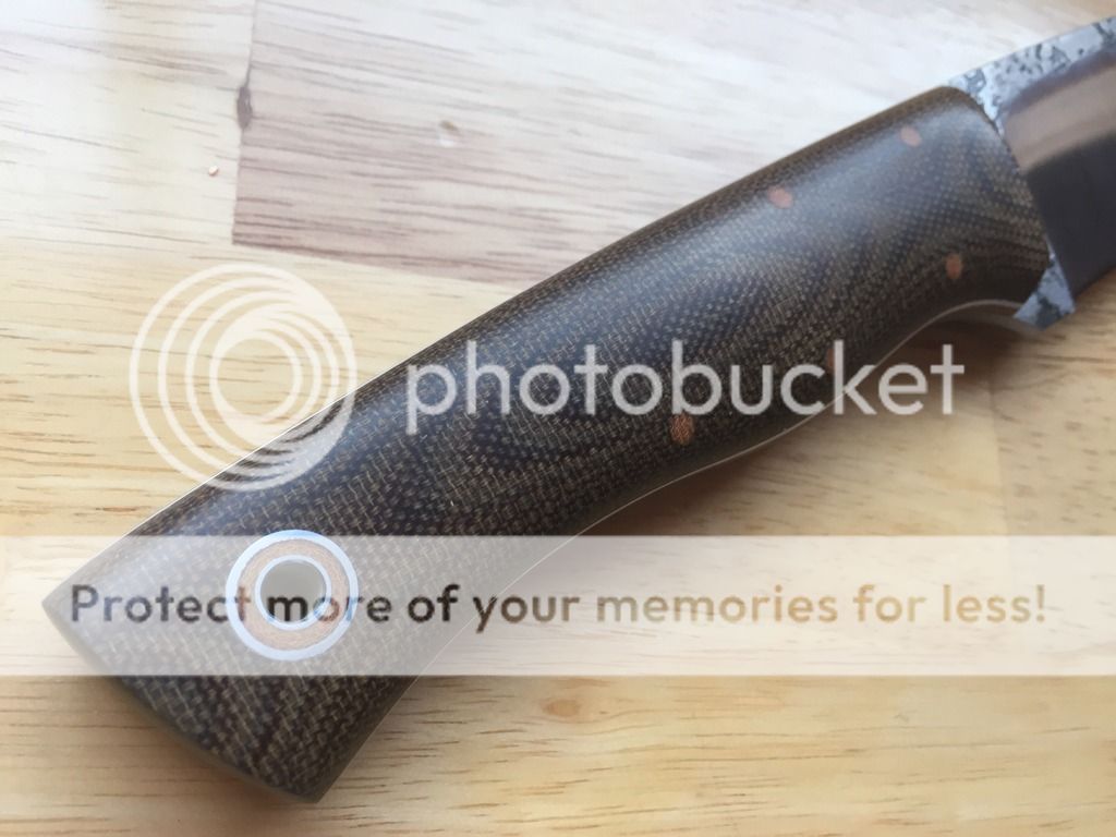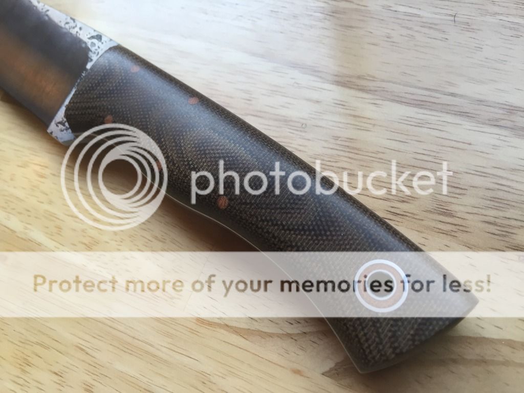 jjsmith Gold Member Feedback: +126 / =0 / -0 Joined Sep 19, 2010 Messages 1,132 Feb 13, 2016 #1 Fiddleback Forge Hunter 01 steel 5/32 thick tapered tang brown canvas micarta with natural liners & white pinstripes JRE leather sheath included This knife has never been used, carried, or sharpened. $SOLD shipped PayPal. USA only please. Last edited: Feb 15, 2016