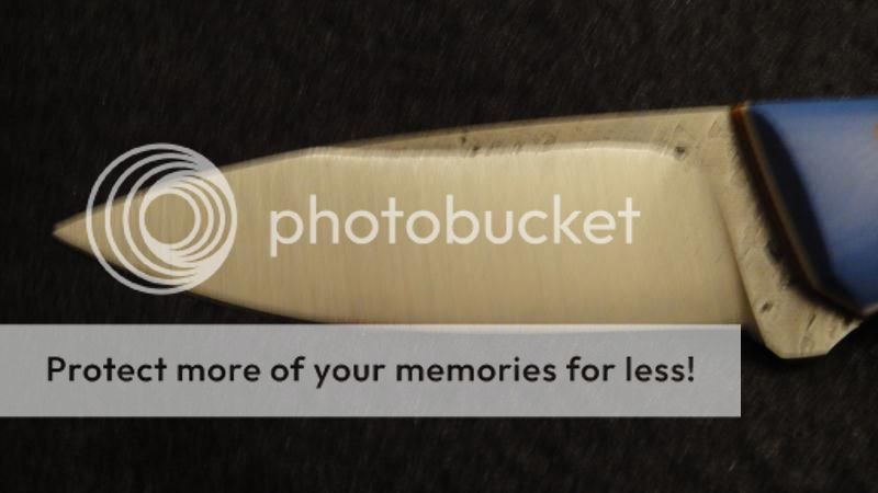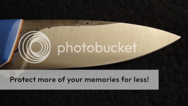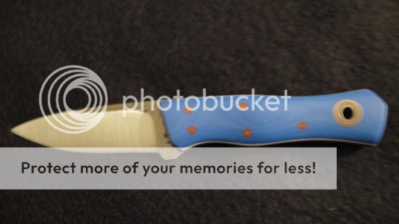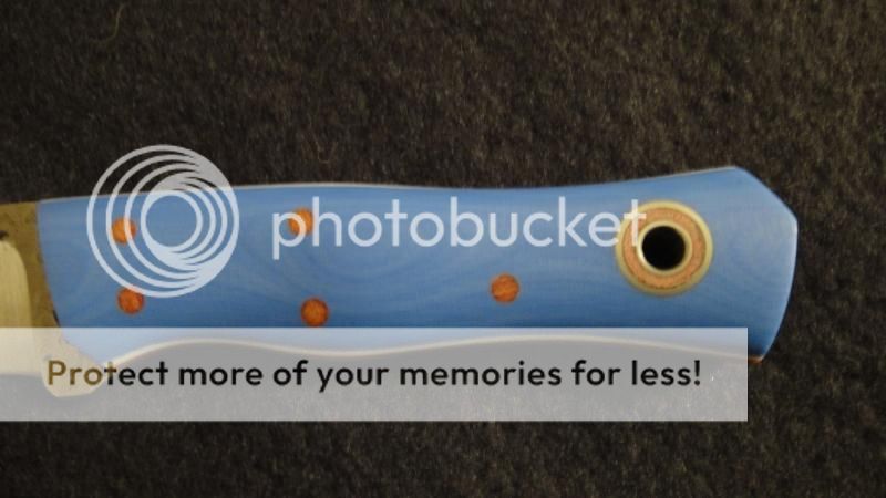 Esquire w/Cornflower blue g10 over natural w/white pinstripes, SFT Tang, convex on 1/8 spalted 01 steel
