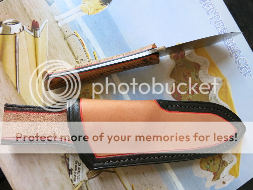 2015 0109 23 - Nessmuk w/ Bocote over black w/ orange pinstripes, Tapered Tang, convex on 5/32 spalted 01 steel - $340 Asking $390 with RLO Sheath