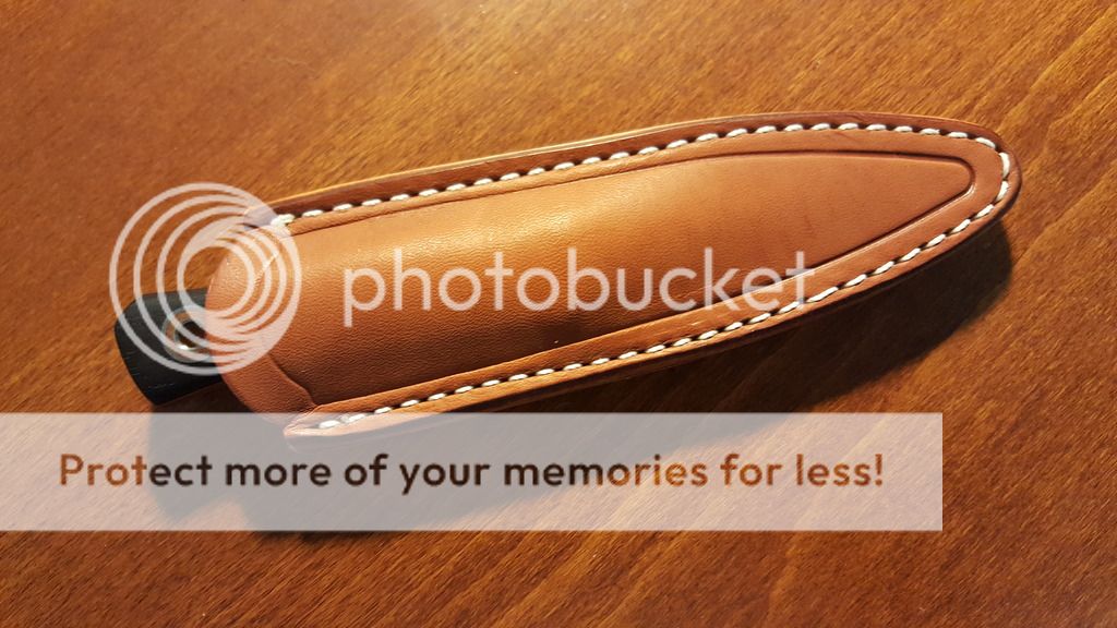 Fiddleback Forge Esquire -$375 $360 - 5/32" 01, tapered tang with blackwood scales, natural micarta liners, and orange g10 pinstripes. Blade length is approximately 2.75 inches, overall length is approximately 6.38 inches, weight is approximately 2.8 ounces. The knife is in great condition - lightly used and carefully stropped and polished. Some minor signs of use. Some faint patina and spots remain. Comes with a Jou Fuu ISP sheath, which was made for a Hiking Buddy but works great for a low-ride carry with the Esquire.