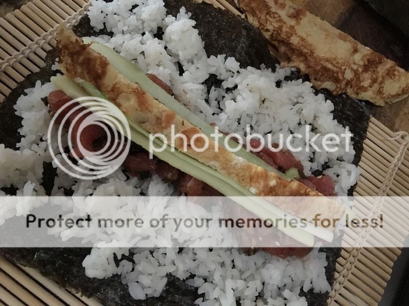 rolling with homemade tamago ( the eggs stuff) cucumbers, more green onions and Sharii rice