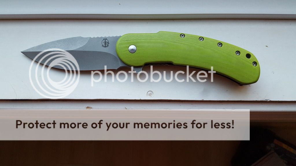 Got this and thought the color might grow on me. Just don't like the green. I have sharpened it on factory bevels and has a decent edge. Centered and tight lock up no lock stick or slip. Trades Hoback Kwaiback CF, Striders CC or GG, other knives considered + or - to even the deal out. Will also take $550 net to me paypal. Knife only did not come with pouch.