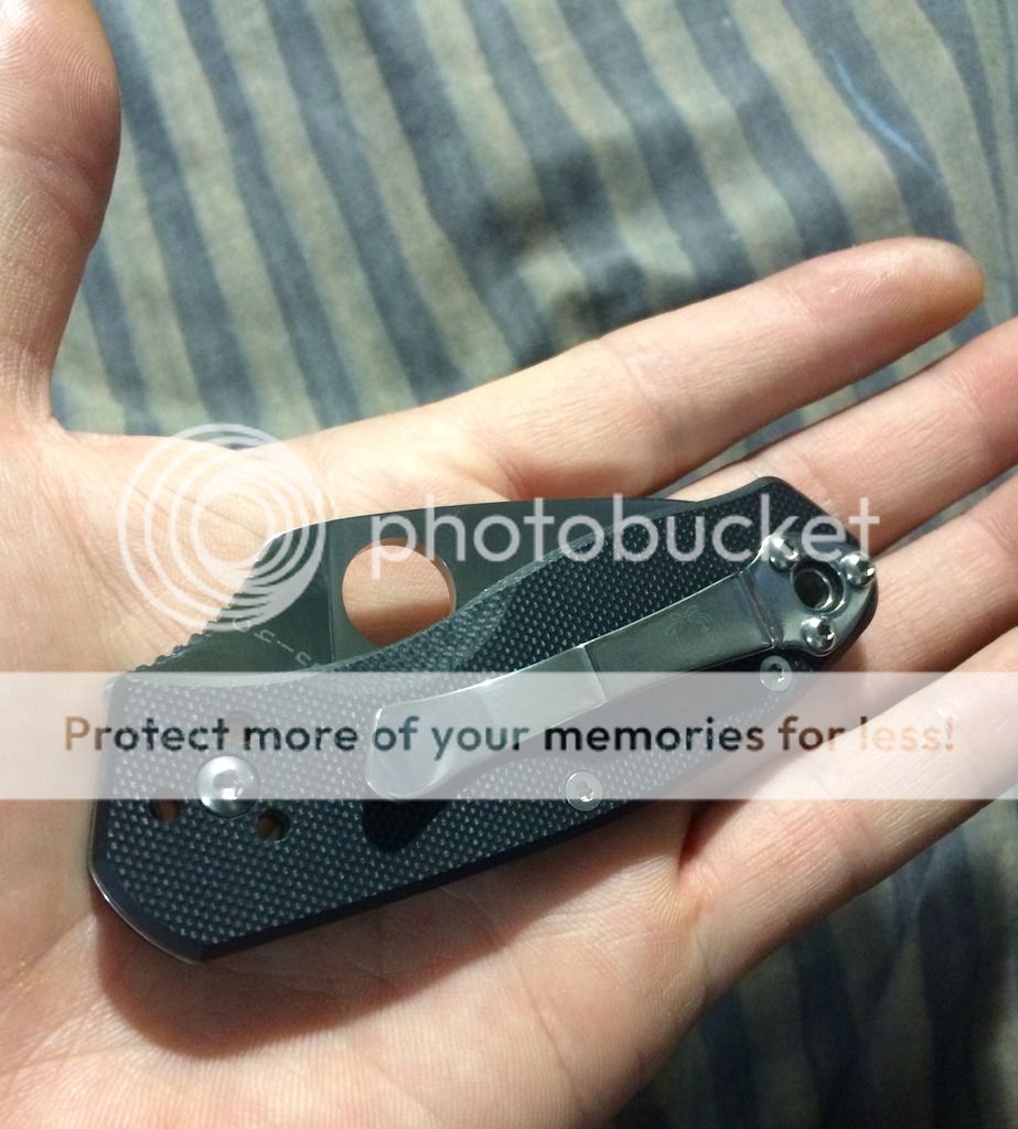 Anyways, every time I use it, it bugs the heck out of me that a small portion of the blade is blocked by the liner and scale and I keep wanting to fix that.... So here she is and the cutting surface is just a hair short of Delica 4! And only 2/3 the size!