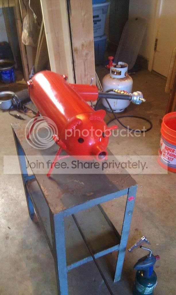 I'm planning on using some 2 inch kaowool and satanite (when I can afford the shipping) for the insulation, and I'm going to put the nozzle and base back on with barrel hinges(at least I think that's what they are called...). I'm going to be re-using the sidearm burner I made for my last, ill fated and now defunct, forge.