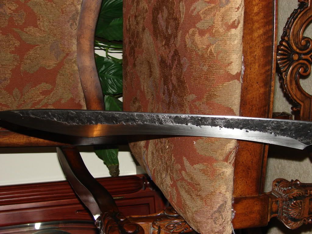 My Deuce was received about 2 weeks ago. This blade weighs in a just about 4lbs. The leather wrapped handle is 11 inches and the blade comes in at 23 inches. I ordered this one in the hammered finish and it looks fantastic! The edge is sharp enough to slice paper dragged across it from tip to about 3/4 on an inch in front of the hilt. At that point the blade was not sharpened fully. The deuce has a nice balance to it and can handled easily one or two handed. From the forged swords I've come across I have to say this is definitely on the higher end both in fit and finish and price for what you get. As far as the handle, the guys at Zombie Tools radiused the aluminum grips perfectly. It really feels great in the hands and the leather give it that extra grip. Overall impression is I'm very glad to have the Deuce and would have no qualms in recommending this fine piece to those who are considering obtaining a sword in the future .