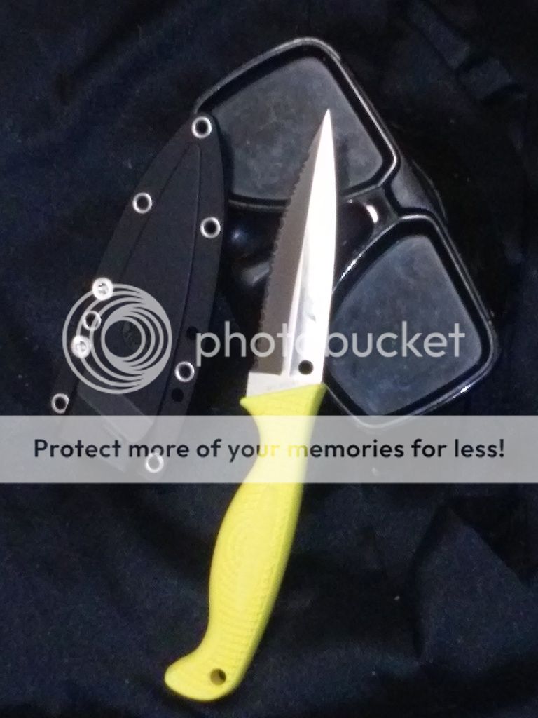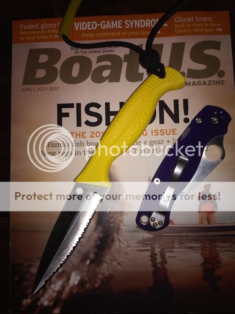 The Fish Hunter I preordered back in January has arrived! Pretty excited to get this knife. My camera is horrible, so jump in and share some good pics if you have one. I'm particularly looking forward to seeing surfingringo sticking some fish. My family isn't making our annual trip to the Keys this year, so it may be a bit before I have a chance to really put it to work. Until then I'll be playing with the sheath to see if I can rig it up for calf straps, and I'll likely sharpen the front third of the false edge on top.