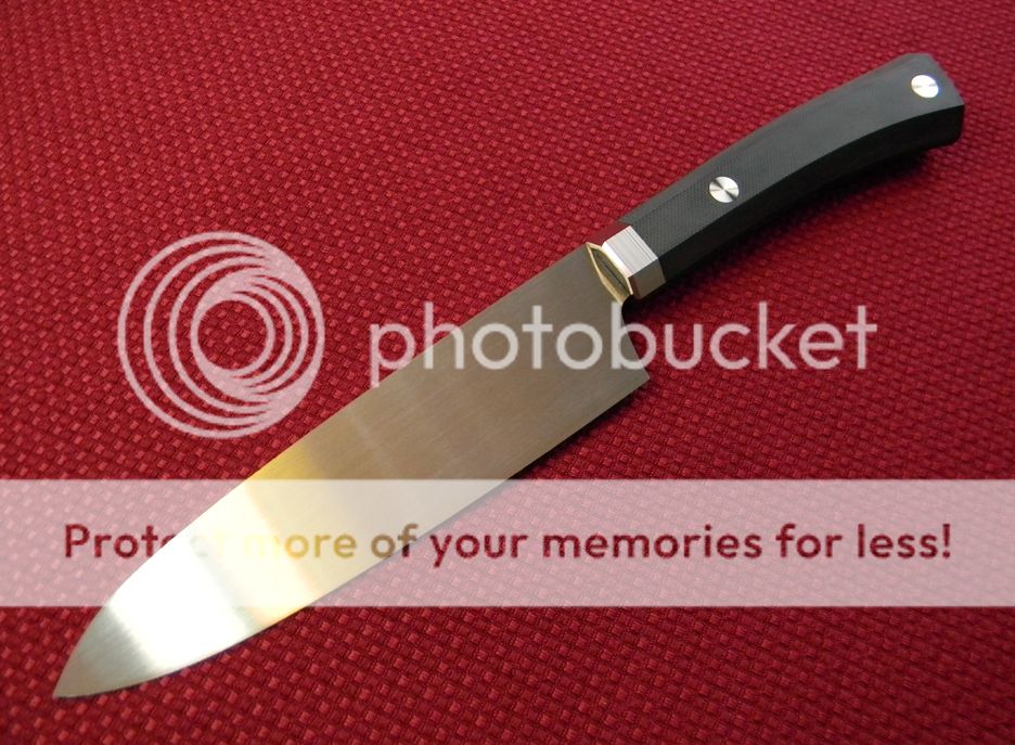 The handle is two part construction hidden tang. In addition to the visible cutlery rivets there are internal "epoxy rivets" and a hidden metal pin. The blade/ferrule/handle transition is sealed with Acraglas resin. The ferrule is internally knurled and bonded to the G10 scales, it will not come loose over time.