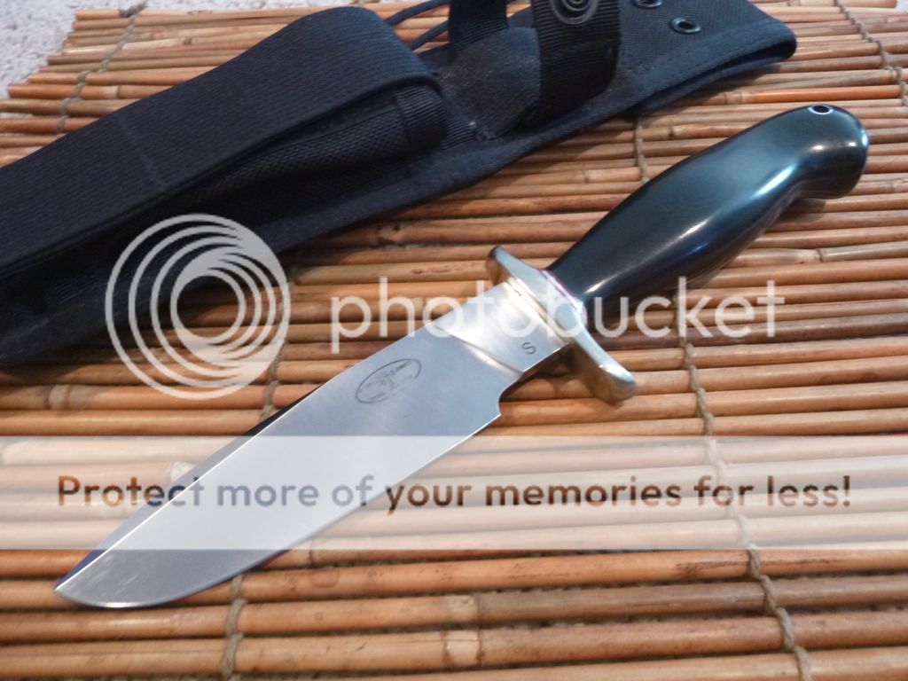 3) Ed Martin Panama Fighter Protype - ATS34 Steel. Blackhawk sheath. 5" blade with 4.25" cutting edge. (a couple small patina spots on guard) - $250