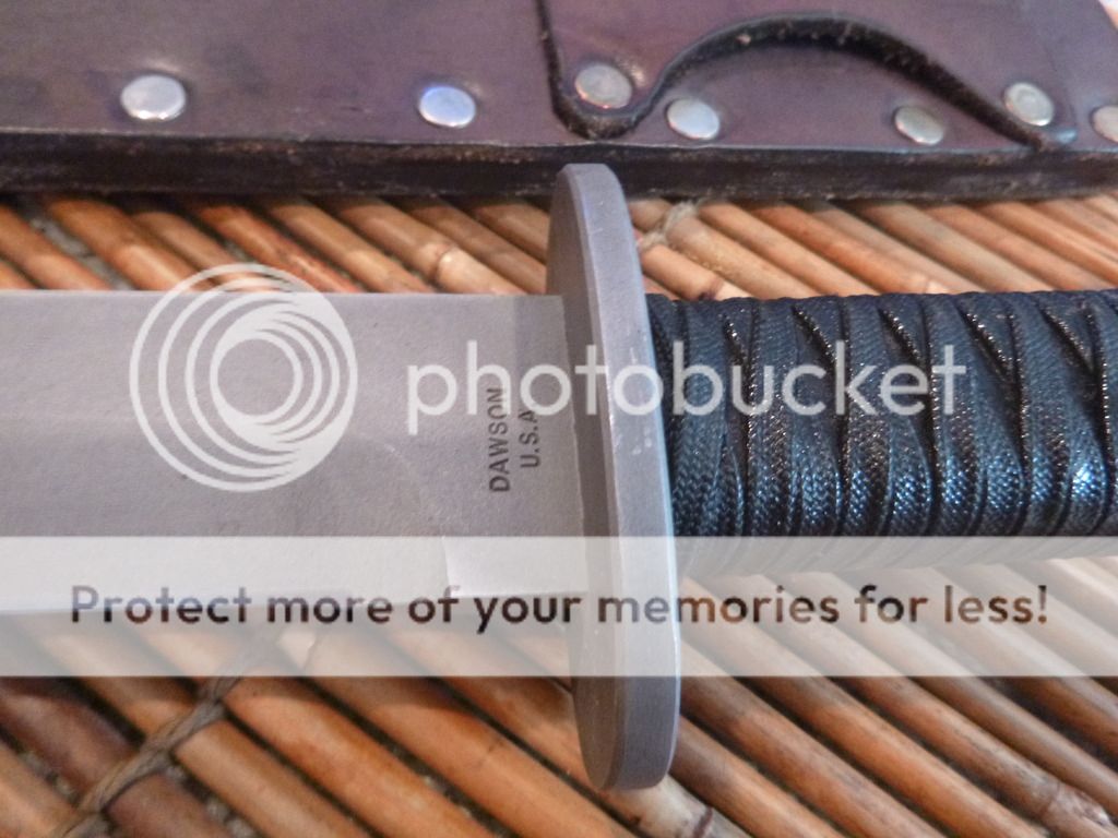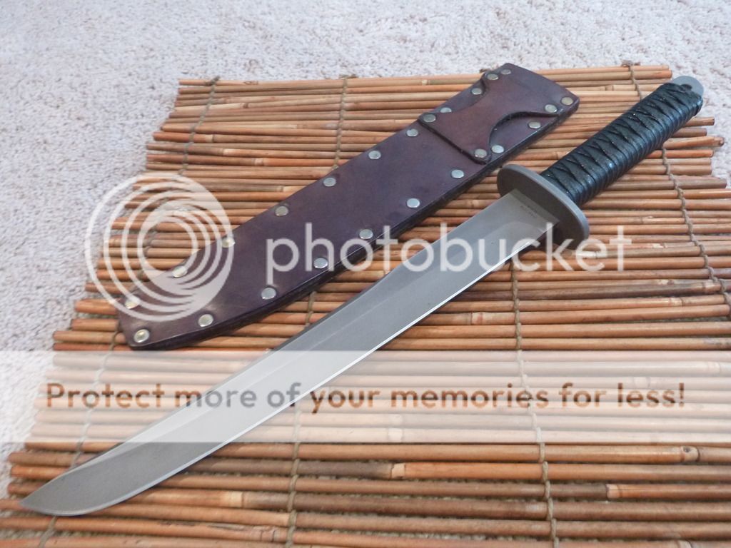 1) Barry Dawson Short Sword: 5160 steel. Custom leather scabbard. Cutting edge of blade is approx 11.25" - $550