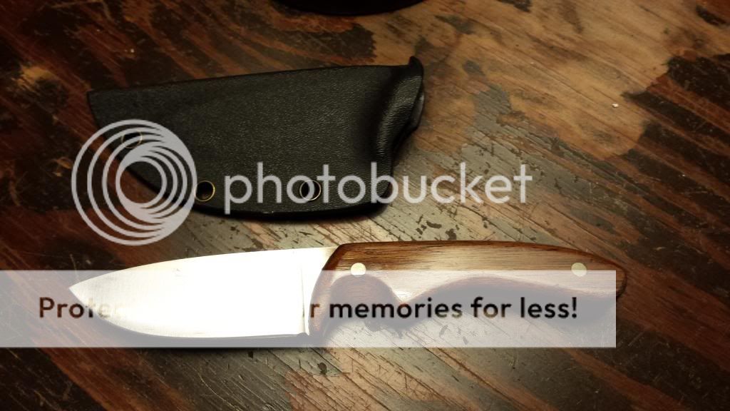 I've got a handmade fixed blade for you guys today. It was made by a member here shaynster and I received it in a trade. I believe it's 1084 steel and cocobolo handles. Pretty well made knife and and a superbly made sheath. Perfect retention.