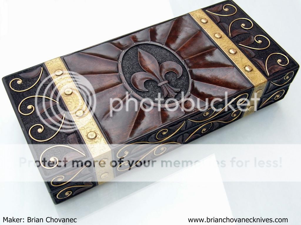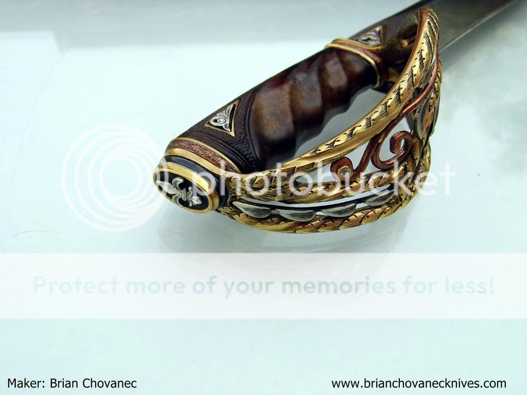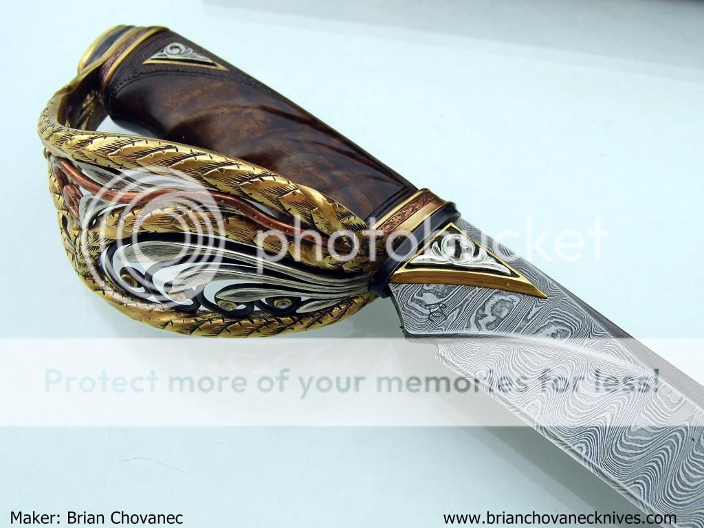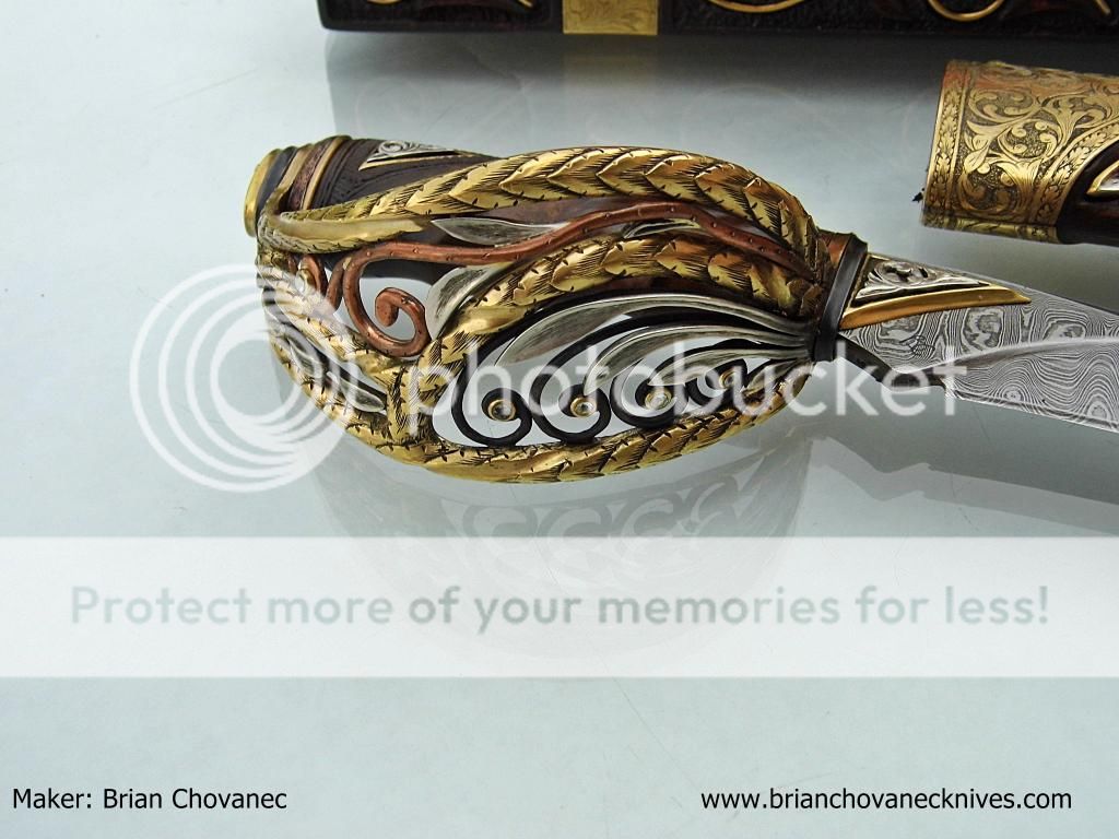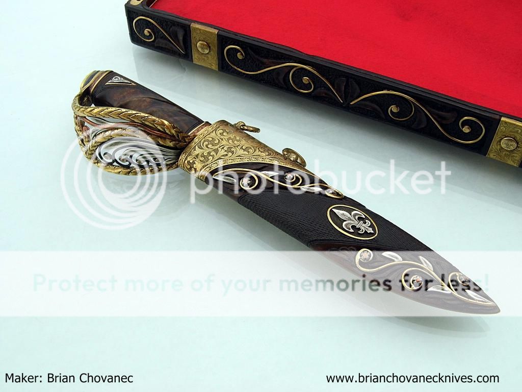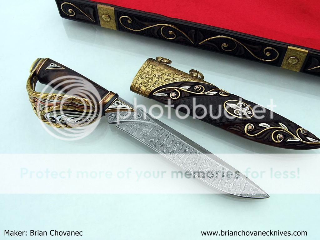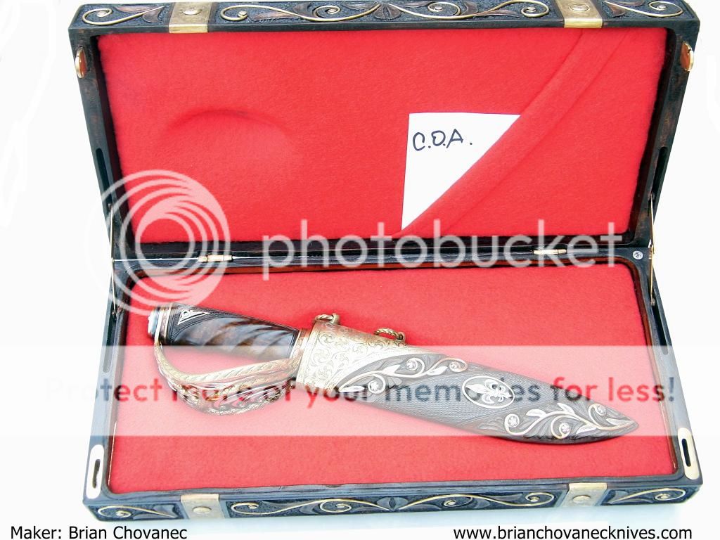 This is a true one of a kind, there just isn't another one like that, period ,and I never make two knives the same ...almost 4 months of work went into making it, there's a lot of details that pics just won't do justice to, as well as some tricky things like hidden locking mechanism on the hermetically sealed case...which btw is carved/and hollowed out from one solid piece of seasoned walnut (10+ years I can guarantee ,probably more),as well as the take-down construction (including the scroll inlays on the sheath,the little flowers in the heads of the scrolls are actually screws holding it in ,anchored in threaded bases counter sunk in the sheath) etc......this is a piece destined for a very discerning collector looking for something special for their collection...looking for 6k OBO ,I'll be more than happy to answer any questions or anything at all,just send me a line at bccustomknives@hotmail.com