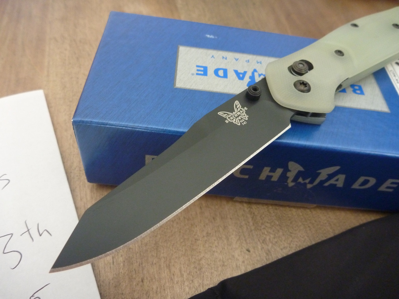 1. Benchmade 940 Osborne Black M4 PE blade with Natual G-10 scales. I'm the original owner purchased from BHQ. It's unused and NIB mint. Perfect knife. Centered, smooth open and no play. No flaws. $215.00