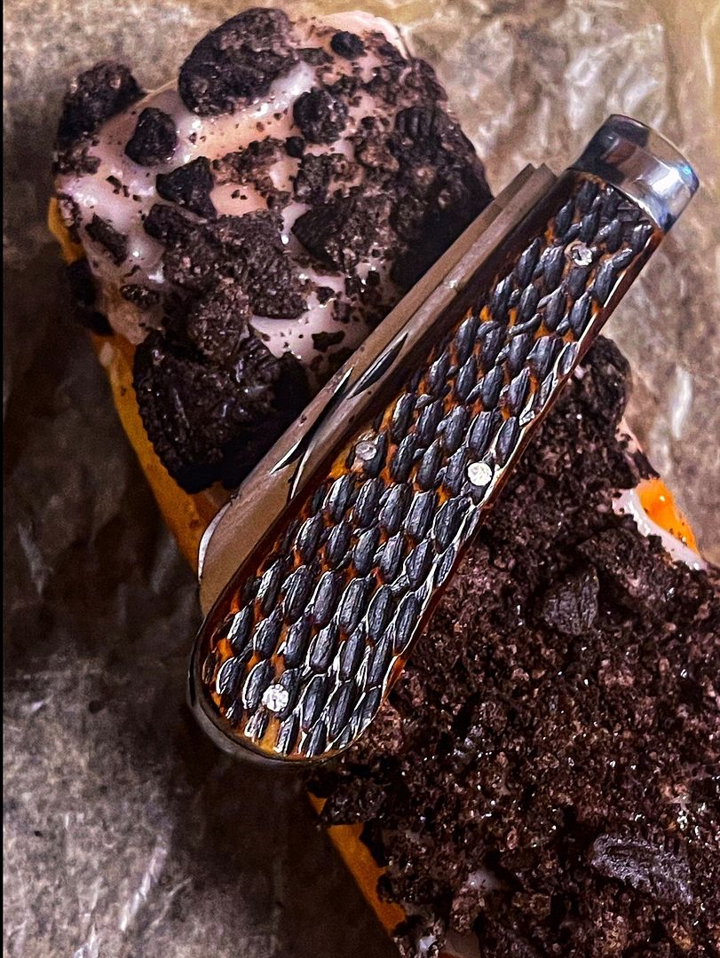 I also made a huge pile of “chips” this afternoon. They were really good, but I didn’t attempt to make chip butty. The thought of explaining to my wife why I was putting fries on buttered bread instead of having them with the meal she had prepared, and why I was taking a picture of my pocket knife on said sammidge, just seemed too daunting at the time…