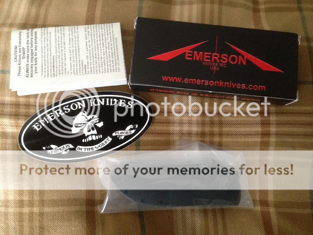 I just received a BRAND NEW Emerson Commander BT (Black Teflon) that I need to sell. I just purchased a new Sebenza so I am looking to sell this to help fund it (so no trades). Blade is about as perfectly centered as an Emerson gets, screaming sharp, has the standoffs (not backspacer) and is in need for a good home. I am looking to sell it for $175....$169....Now $159!!! shipped. I cover shipping and paypal fees. Shipping is to the CONUS, other place please pm me about added shipping cost. Thanks!