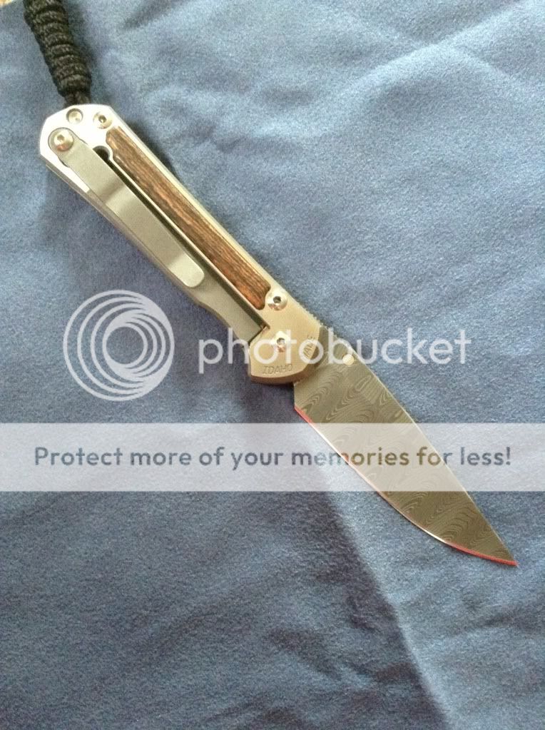 Chris Reeve Small 21 Sebenza - Bocote Inlay with Devin Thomas Stainless Steel Ladder Damascus Blade: Knife is in like new condition. Only ever handled and for posing for pics. Beautiful Bocote Inlay. Lockup is in the 50% range. Blade is Centered. BD Card of Auguse 30, 2012. Blue Cloth and all paperwork is included as well as tool and leather slip sheath.