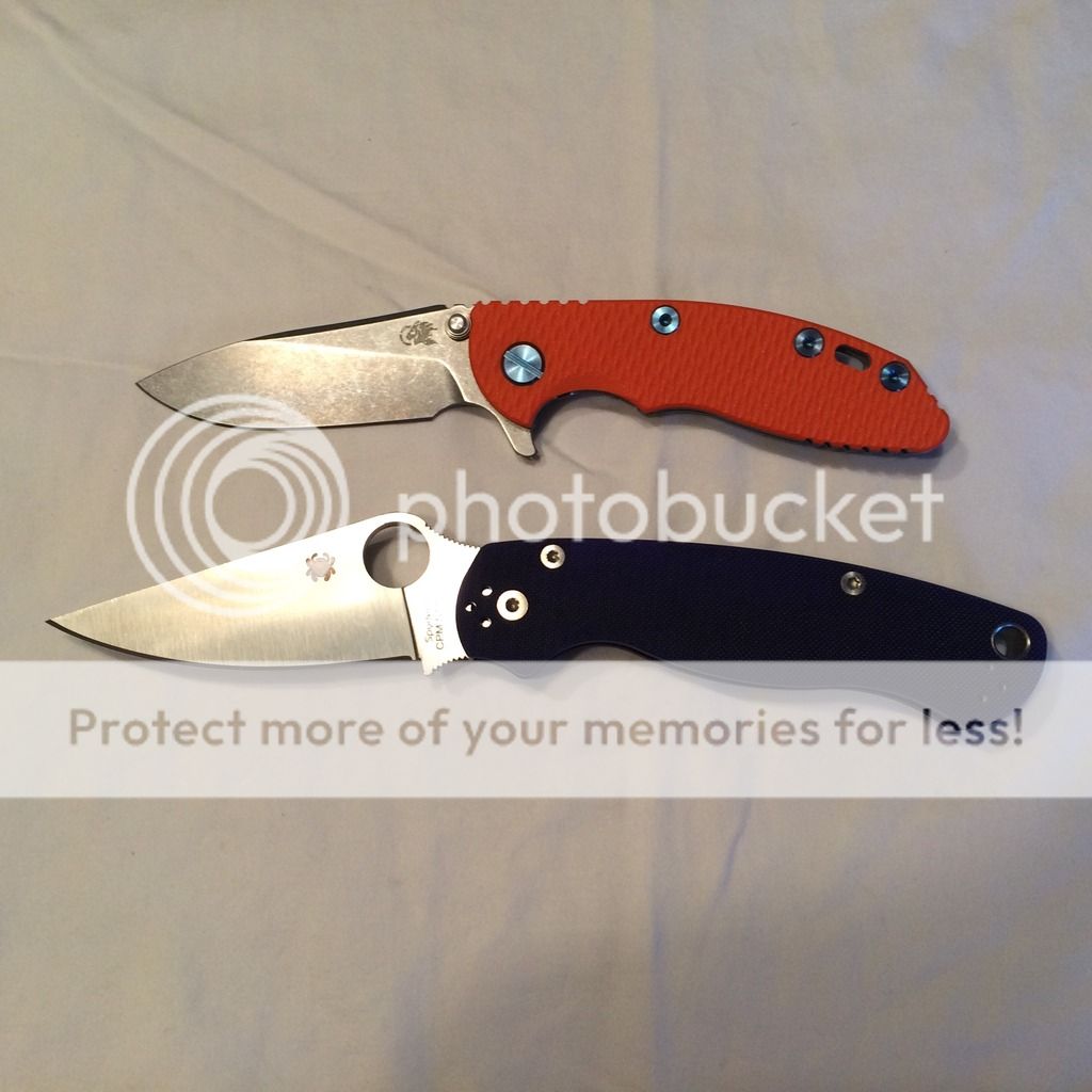 1. Hinderer 3" Slicer orange g10 scale. Knife has been carried a few times, but I can't find any wear marks. Original edge. Including all blue hardware and original stuff. This knife is not from newest run. Flips pretty good with a little wrist. Comes with box and peanuts. $old